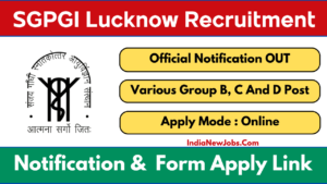 SGPGI Lucknow Recruitment 2025 Notification OUT For Group B, C & D 1479 Posts