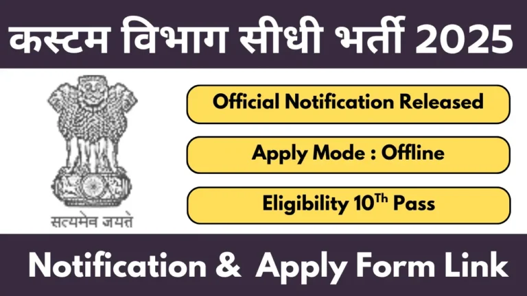 Customs Pune Group C Recruitment 2025: The Office of the Commissioner Pune has released the latest notification for the recruitment …