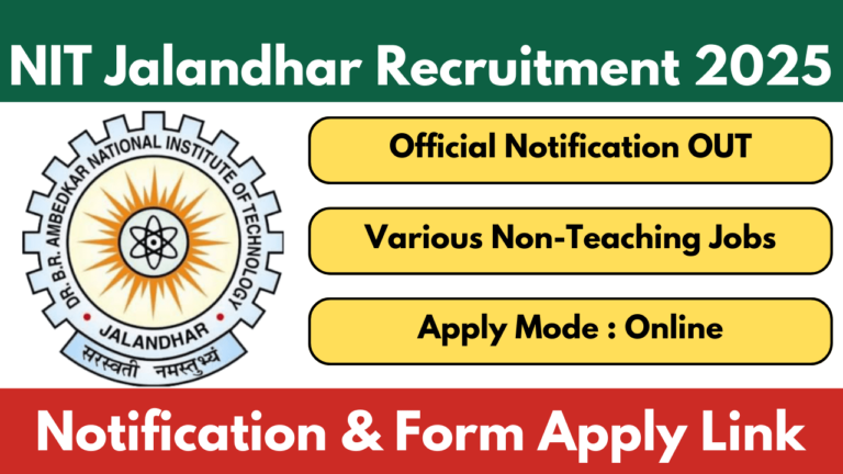 NIT Jalandhar Recruitment 2025 Non-Teaching Posts: The Dr. BR Ambedkar National Institute of Technology (NIT), Jalandhar (Punjab), has released the …