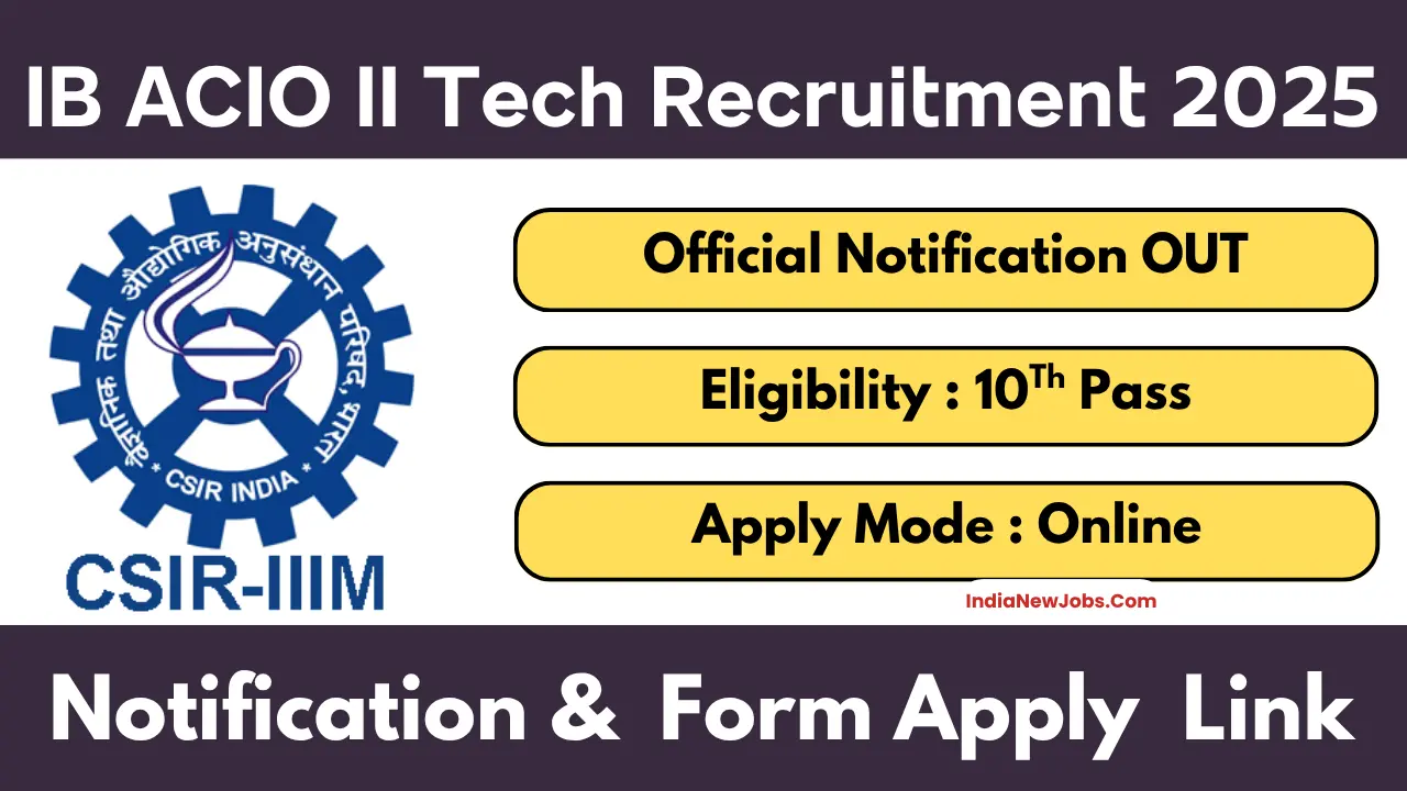 | Recruitment Organization | CSIR-Indian Institute of Integrative Medicine (CSIR-IIIM), Jammu |