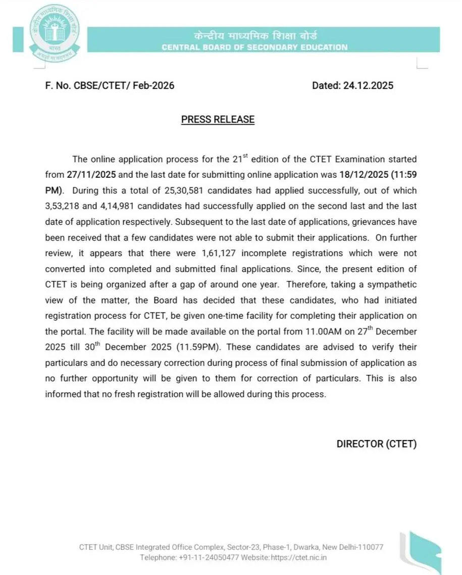 CTET 2026 Notification Date And Exam Date Full Information Check Here: The Central Board of Secondary Education (CBSE), has released the latest notification for the Central Teacher Eligibility Test (CTET) Application Form 2026 For All India Candidates. Eligible candidates can apply online for the CTET February 2026 starting from 27 November 2025. All the details related to CTET February 2026 are provided below.