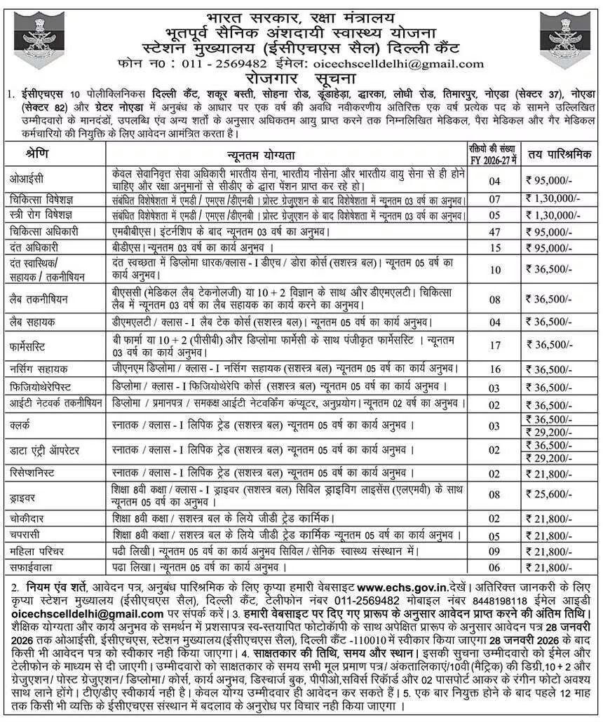 ECHS Delhi Recruitment 2026 Eligibility Detail