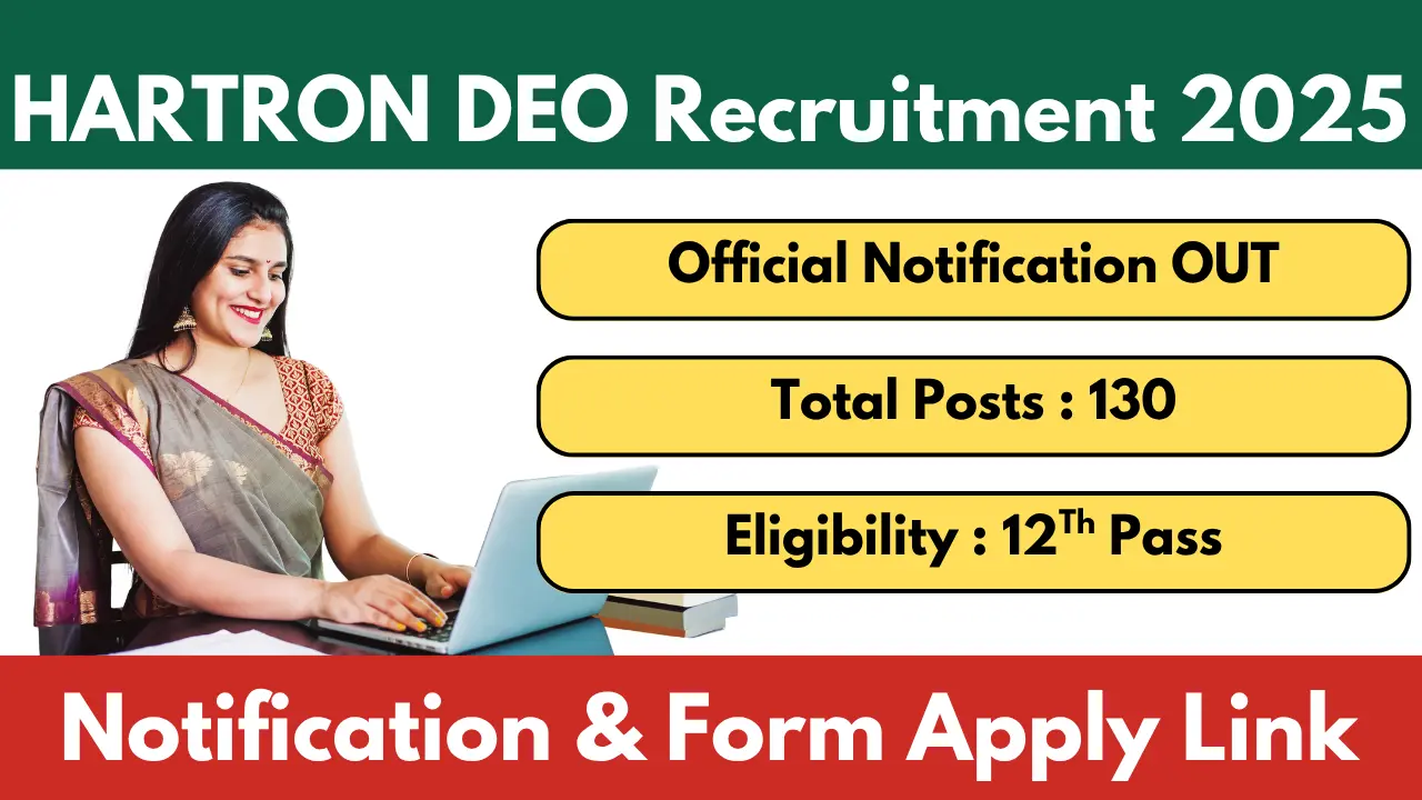 Hartron DEO Vacancy 2025 Notification: The HARTRON (Haryana State Electronics Development Corporation Ltd.) has released the latest notification for the recruitment of 130 Data Entry Operators (DEO) vacancies across many districts of Haryana. Eligible candidates can apply online through the official HARTRON website: hartronservices.com. All the important details regarding the HARTRON DEO Vacancy 2025 are provided below.