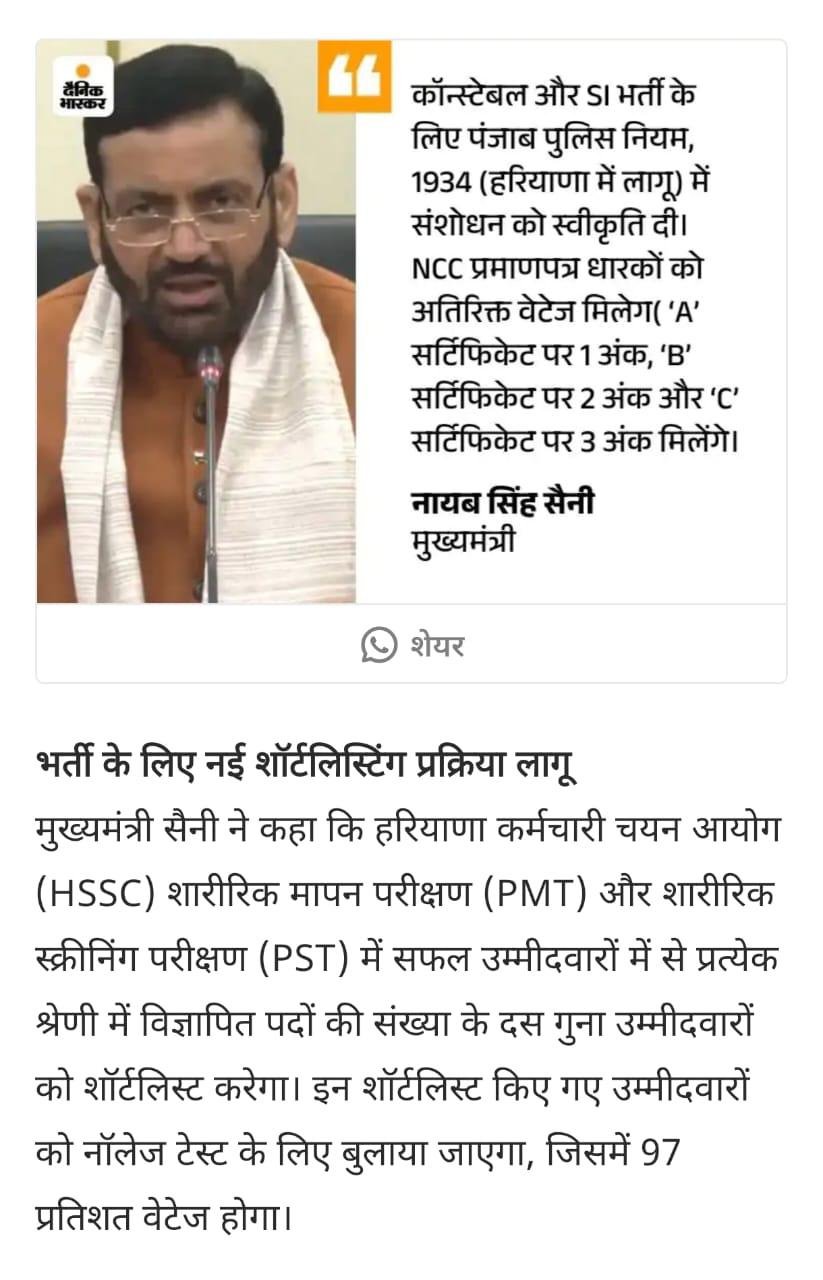As per the latest rules and notification update, the Haryana Government has approved amendments to the Punjab Police Rules 1934 (applicable in Haryana) for Constable & SI recruitment.