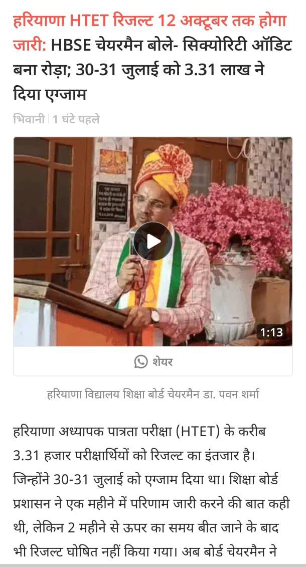 HTET Result 2025 Declared Soon by HBSE, Check From This Direct Link Here