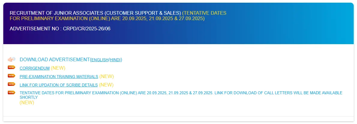 Exam NameJunior Associate (Clerk – Customer Support & Sales)
