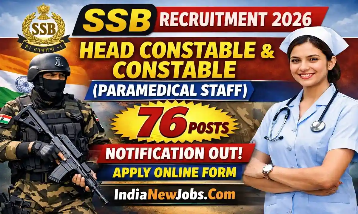 SSB Paramedical Staff Recruitment 2026: The Sashastra Seema Bal (SSB) has released the latest notification for the recruitment of Head Constable & Constable (Paramedical Staff) posts. The vacancies include Laboratory Assistant, Physiotherapy Assistant, and Nursing Assistant posts. According to the official notification, a total of 76 vacancies have been announced. Eligible candidates can apply online through the official recruitment portal before the last date.