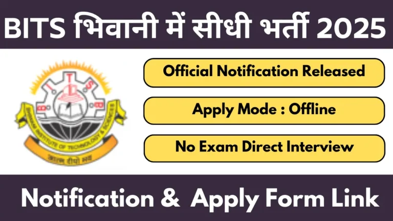 BITS Bhiwani Recruitment 2025 Notification And Offline Form Download: The Bhiwani Institute of Technology and Science, Bhiwani has released the …